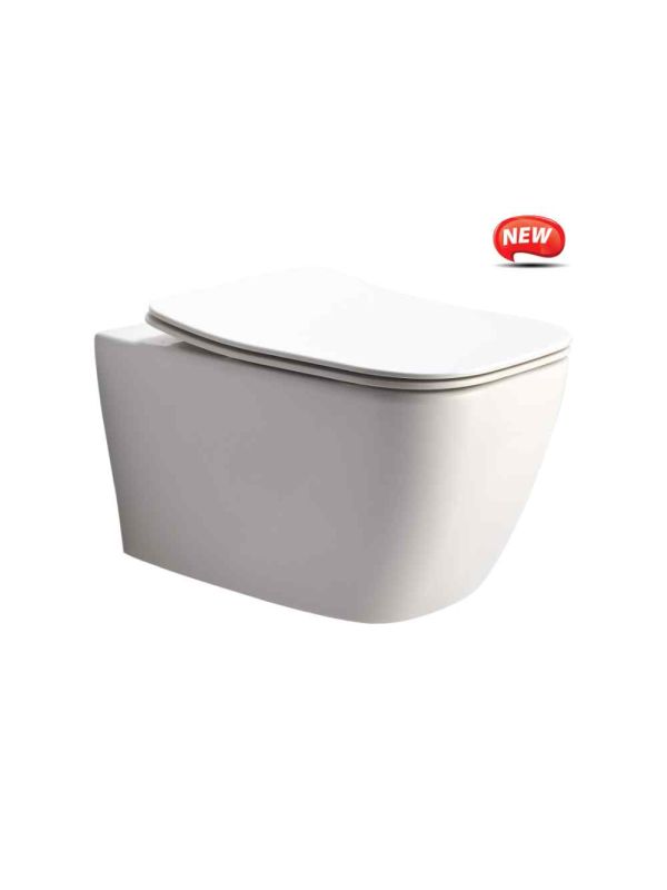 Brand: Cera Series: Carlton Product Name: Carlton Snow White Rimless Wall Hung Commode Water Closet With Soft Close Seat Cover Item Code: S1043147 Size: 490x350x360mm Trap Type: P Trap Material: Ceramic Color: Snow White Seamless body Rimless - Easy to clean Hygienic Water saving - Inspired by our philosophy saving water through every product Smart installation for seamless body Duroplast slim soft close seat cover Smart installation kit