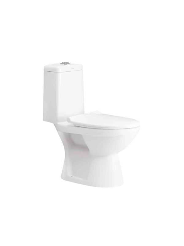 Brand: Cera Series: Casino Product Name: Casino Snow White One Piece Commode With Seat Cover & Twin Flush Fittings Water Closet Item Code: S1013149 Size: 660x350x760mm Trap Type: S Trap Trap Size: 220mm Material: Ceramic Color: Snow White Glazed trap. Water saving - Inspired by our philosophy saving water through every product