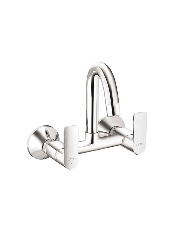 Brand: Cera Series: Chelsea Product Name: Wall Mounted Sink Mixer with 150mm Long Swivel Spout Connecting Legs & Wall Flange Item Code: F1016501 Size: 6Inch (150mm) Material: Brass Color: Chrome WEP-I GREEN Eco-friendly flow rate for maximum water saving.