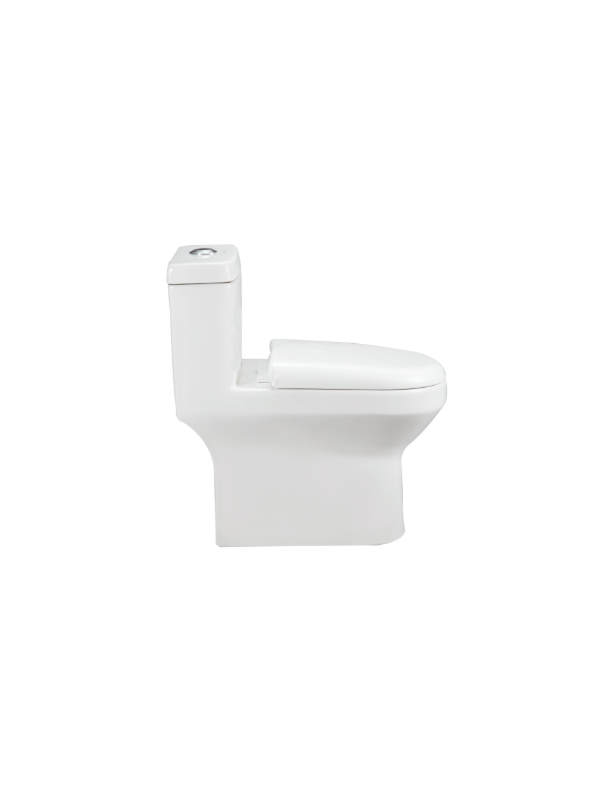 Brand: Cera Series: Chisel Product Name: One Piece Commode With Soft Close Seat Cover & Twin Flush Fittings Water Closet Item Code: S1013128 Size: 675x365x710mm Trap Type: S Trap Trap Size: 285mm Material: Ceramic Color: Snow White Glazed trap. Siphonic jet flushing Water saving - Inspired by our philosophy saving water through every product