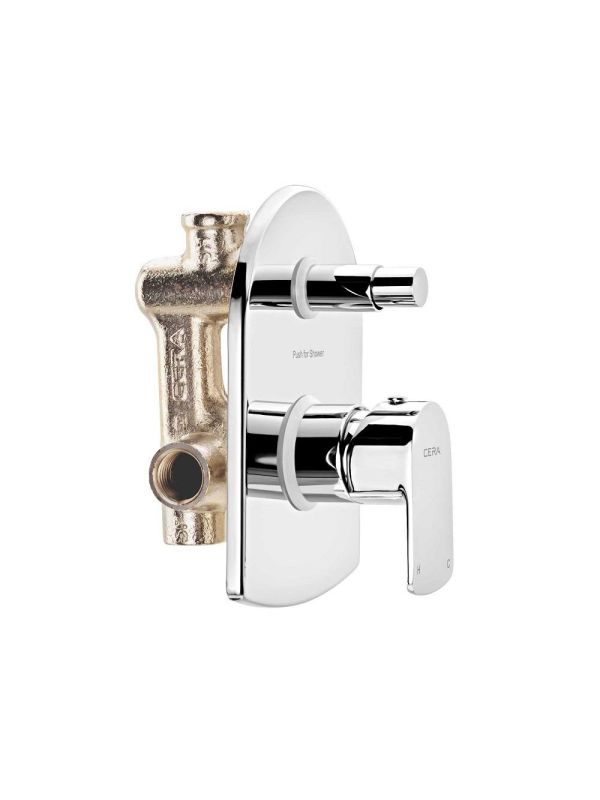 Brand: Cera Product Name: Push Type Single Lever Concealed Diverter System Consisting of Exposed and Concealed Part Set Item Code: F1019701-F4010108 Series: Chromo Includes: Exposed part F1019701, Concealed Part F4010108 Push type single lever concealed diverter system consisting of Exposed part (lever, tip ton knob, wall flange) and Concealed part (35 mm cartridge with button assembly, cartridge sleeve) Material: Brass Color: Chrome Warranty CERA products have been manufactured under the highest standards of quality and workmanship. CERA are backed by prompt and efficient after-sales service.