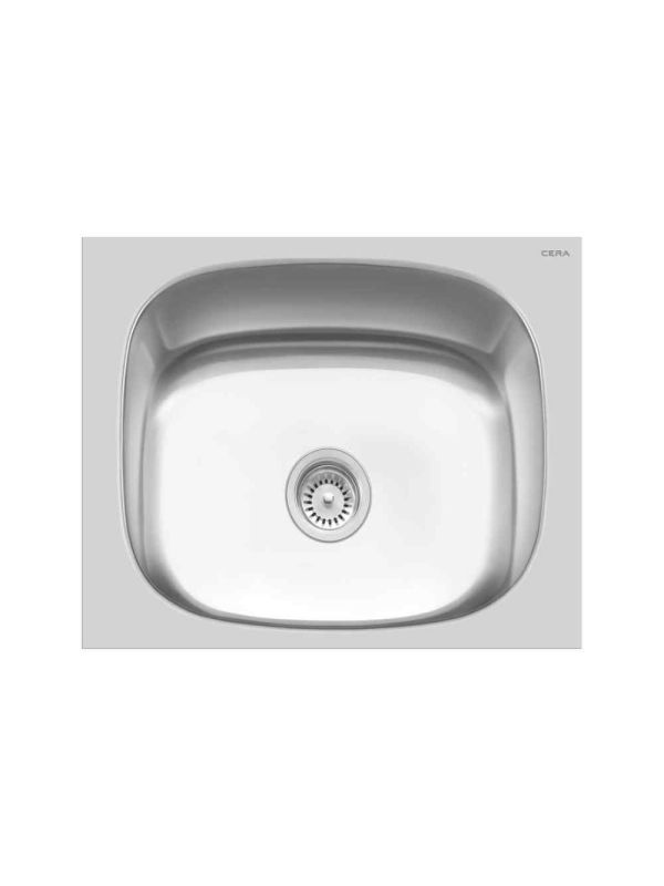 Brand: Cera Series: Dallas Product Name: Classic Range Dallas Single Bowl Sink 1mm Thick SS-304 Top Mount 24X18Inch-Gloss Finish Item Code: B4511101 Size: 610x455mm Material: Stainless Steel Finish: Gloss Depth: 255mm (10Inch). Installation: Topmount. Round Strainer: Round shape choke stopper with uniquely designed water passage for free flow of water Top Mount Installation: Gives better aesthetics