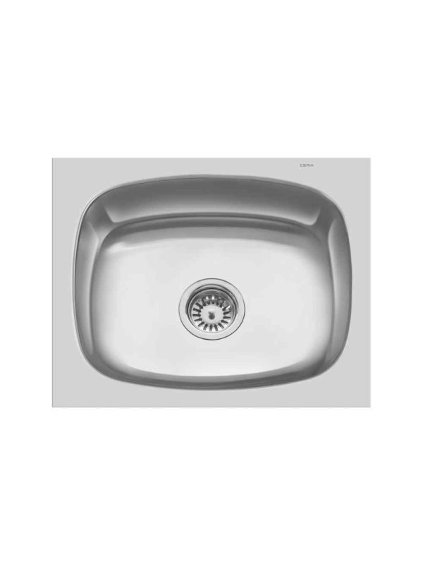 Brand: Cera Series: Dora Product Name: Single Bowl Sink 1mm Thick SS-304 Top Mount 20X17Inch-Matt Finish Item Code: B4511104 Size: 510x430mm Material: Stainless Steel Finish: Matt Depth: 208mm (8Inch). Installation: Topmount. Round Strainer: Round shape choke stopper with uniquely designed water passage for free flow of water Top Mount Installation: Gives better aesthetics