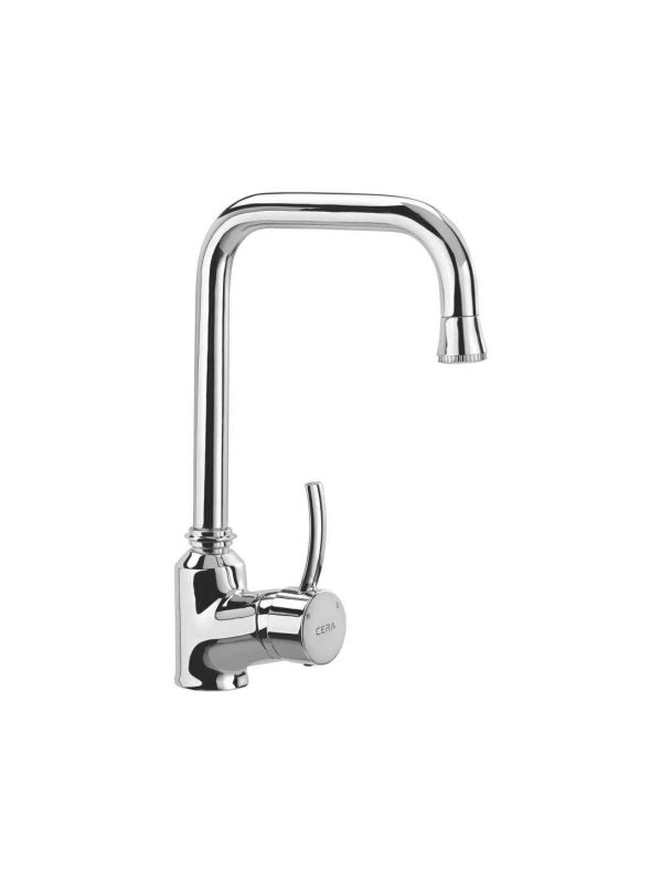 Brand: Cera Series: Crayon Product Name: Quarter Turn Single Lever Sink Mixer with 9Inch Long Swivel Spout Crayon Single lever sink mixer (table mounted) with 232 mm (9") long swivel spout and 450 mm long braided connection pipe Item Code: F2008571 Size: 9Inch Material: Brass Color: Chrome