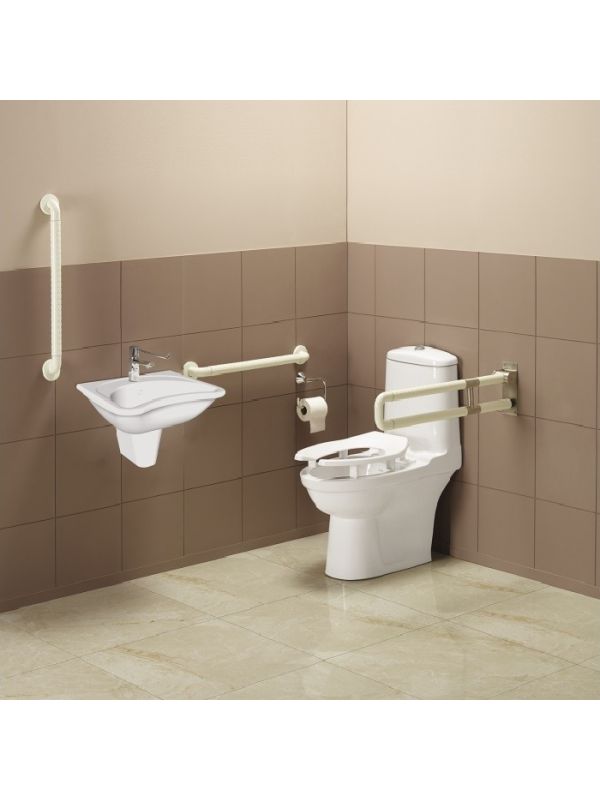 Brand: Cera Product Code: S1013200 Product Name: Special needs range Cruse Set Color: Snow White Size: 710 x 370 x 770 mm Trap Type: S Trap Trap Distance: 300 mm In Cruse Set: Cat. No. B1520118 Soft close seat cover, Cat. No. S2040159 CRANE Wall hung wash basin 665 x 545 x 190 mm, Cat. No. F9030453 Single lever clinical faucet, Cat. No. B2210106 Wall mounted grab bar 600 mm long, Cat. No. B2210106 Wall mounted grab bar 600 mm long, Cat. No. B2210108 Wall mounted hinged hand rail 750 x 100 Paper holder and bottle trap are not part of the offering Ceramic sanitaryware products come standard with a warranty of 10 years for residential use and 5 years for commercial use.