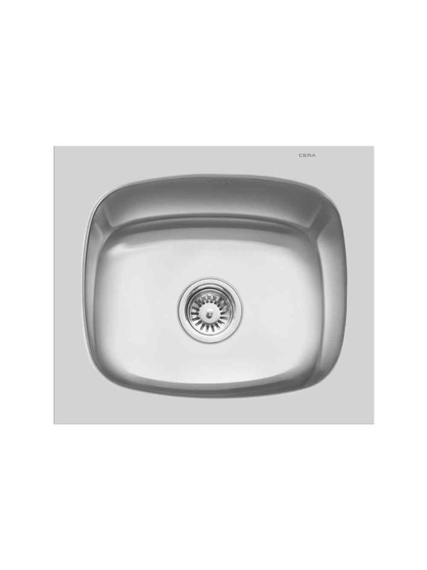 Brand: Cera Series: Domino Product Name: Single Bowl Sink 1mm Thick SS-304 Top Mount 21X18Inch-Matt Finish Item Code: B4511103 Size: 535x455mm Material: Stainless Steel Finish: Matt Depth: 203mm (8Inch). Installation: Topmount. Round Strainer: Round shape choke stopper with uniquely designed water passage for free flow of water Top Mount Installation: Gives better aesthetics