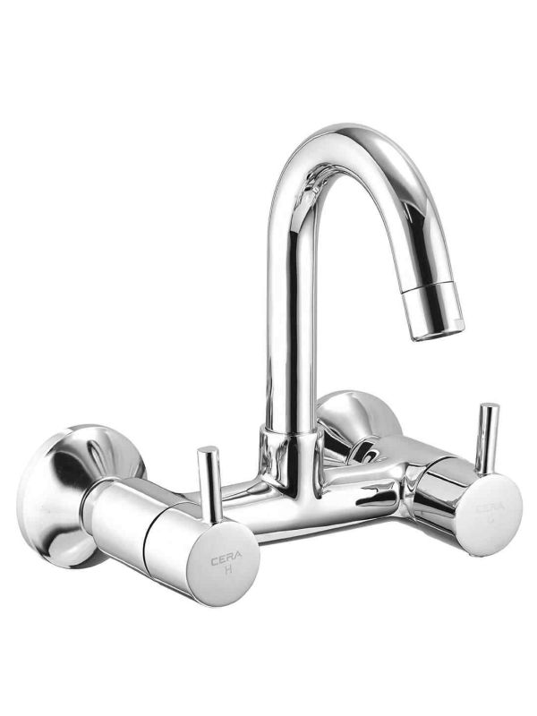 Brand: Cera Series: Fountain Product Name: Fountain Sink Mixer Wall Mounted With 150mm Long Swivel Spout Connecting Legs & Wall Flange Item Code: F2013501 Size: 6Inch (150mm) Material: Brass Color: Chrome Griha certified green products WEP-I Green: Eco-Friendly flow rate with maximum water saving
