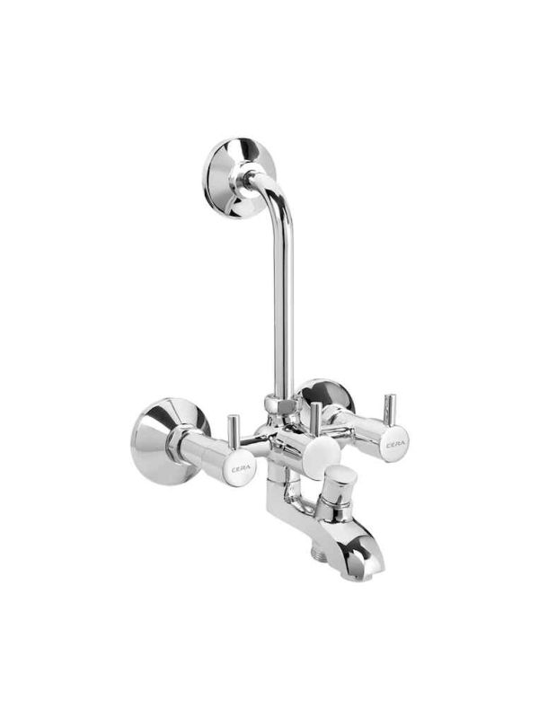 Brand: Cera Series: Garnet Product Name: garnet 3 in 1 Wall Mixer With Arrangement For Both Telephonic Shower & Overhead Shower With Bend Pipe Item Code: F2002403 Material: Brass Color: Chrome