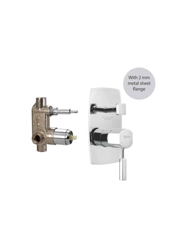 Brand: Cera Product Code: F1014702-F4010103 Series: Gayle Product Name: Gayle Single Lever Concealed Diverter System Consisting Of Exposed Part Includes: Exposed Part: F1014702, Concealed Part: F4010103 Concealed body Size: 35mm Material: Brass Color: Chrome Single Lever Concealed Diverter System Consisting Of Exposed Part (Lever, Tip Ton Knob, 2mm Sheet Flange) & Concealed Part (35mm Cartridge With Button Assembly, Cartridge Sleeve).
