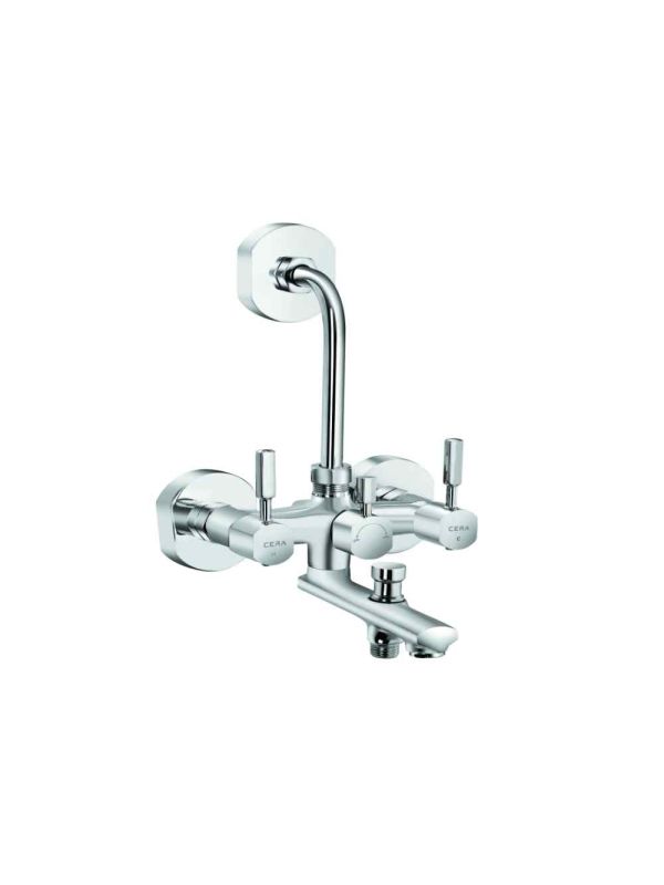 Brand: Cera Series: Gayle Product Name: Gayle Wall Mixer 3-In-1 for Both Telephonic Shower & Overhead Shower With Bend Pipe Item Code: F1014403 Material: Brass Color: Chrome