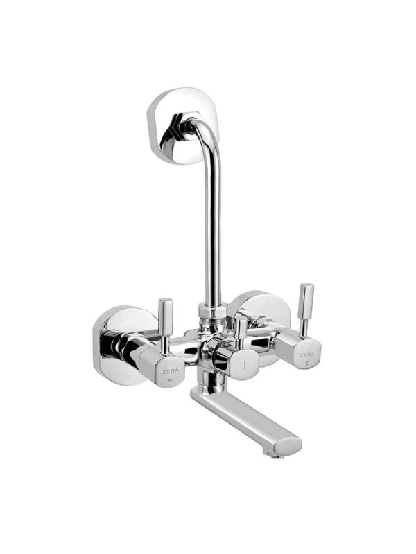 Brand: Cera Series: Gayle Product Name: Gayle Wall Mixer With Bend Pipe For Overhead Shower With Built-In Non Return Valve Item Code: F1014402 Material: Brass Color: Chrome