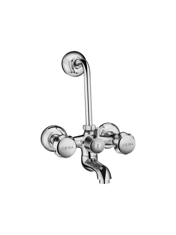 Brand: Cera Series: Ocean Product Name: Ocean Wall Mixer With Bend Pipe For Overhead Shower Quarter Turn Item Code: F2006401 Material: Brass Color: Chrome