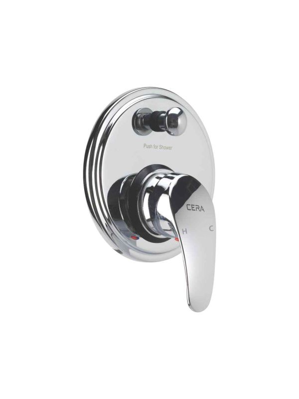 Brand: Cera Item Code: F1001721-F4030101 Series: Platinum Product Name: High Flow Single Lever Concealed Diverter System Consisting Of Exposed and Concealed Part Set Includes: Exposed Part: F1001721, Concealed Part: F4030101 Concealed body Size: 45mm Material: Brass Color: Chrome High Flow Single Lever Concealed Diverter System Consisting Of Exposed Part (Lever, Tip Ton Knob, Flange) & Concealed Part (45 mm Cartridge With Button Assembly, Cartridge Sleeve).