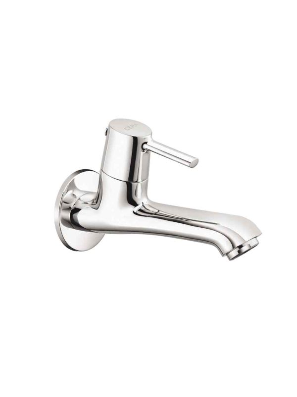 Brand: Cera Series: Ripple Product Name: Ripple Bib Cock Long Nose With Wall Flange & Aerator Item Code: F1017152 Material: Brass Color: Chrome WEP-I Green: Eco-Friendly flow rate with maximum water saving