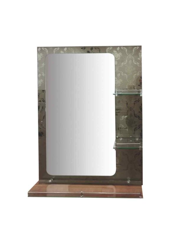 Brand: Cera Product Name: Shelf Mirror 800x600mm Item Code: B3510144 Size: 800x600mm Material: Glass Color: Chrome 5mm thick glass mirror with double coat for protection and longevity, 3 shelves with 5mm clear glass and stainless rails and silver plating on the back for better reflection.