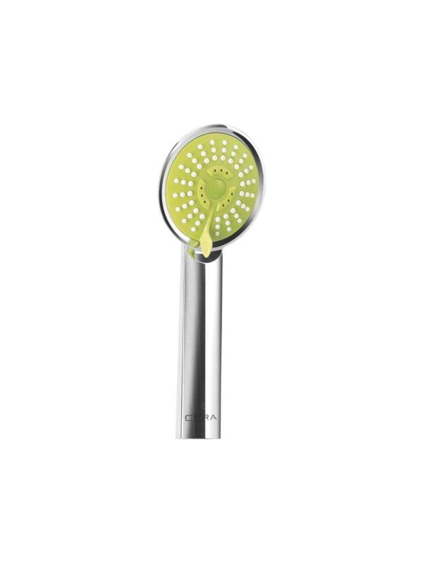 Brand: Cera Product Name: 4Inch Dia Hand Shower Dia With 3 Flow & 140mm Long Arm Item Code: F7030104AB Size: 4Inch (90mm) Material: ABS Color: Green