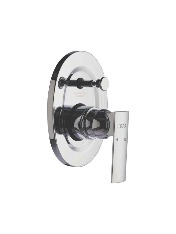 Brand: Cera Series: Titanium Product Name: 5-Way Single Lever Concealed Diverter System Consisting Of Exposed and Concealed Part Set Includes: Exposed Part: F1003711, Concealed Part: F4020101 Material: Brass Color: Chrome Item Code: F1003711-F4020101 5-way (3 inlets + 2 outlets) single lever concealed diverter system consisting of Exposed part (lever, tip ton knob, flange) and Concealed part (cartridge with button assembly, cartridge sleeve)