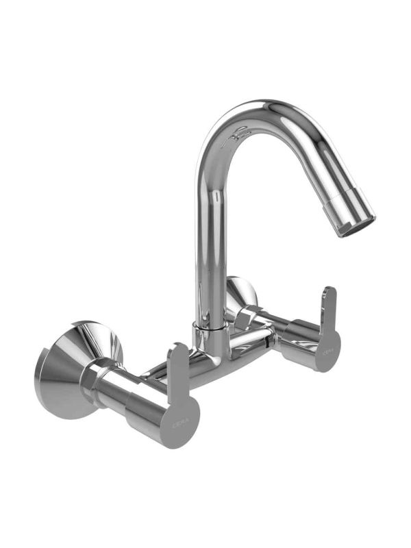 Brand: Cera Series: Victor Product Name: Single Lever Sink Mixer Wall Mounted With 190mm Long Swivel Spout Connecting Legs & Wall Flange Item Code: F1015501 Size: 7.5Inch (190mm) Material: Brass Color: Chrome Griha Council: Green Product