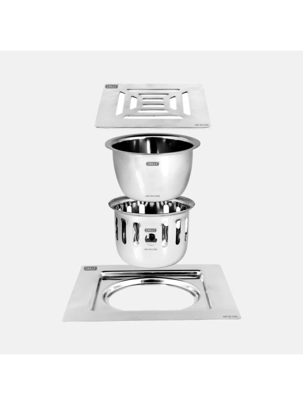 Chilly Vintage Gloss Finish 153x153mm Square Ringo Design Flat Cut Cockroach Trap Drain CCT-SSRDFC-153