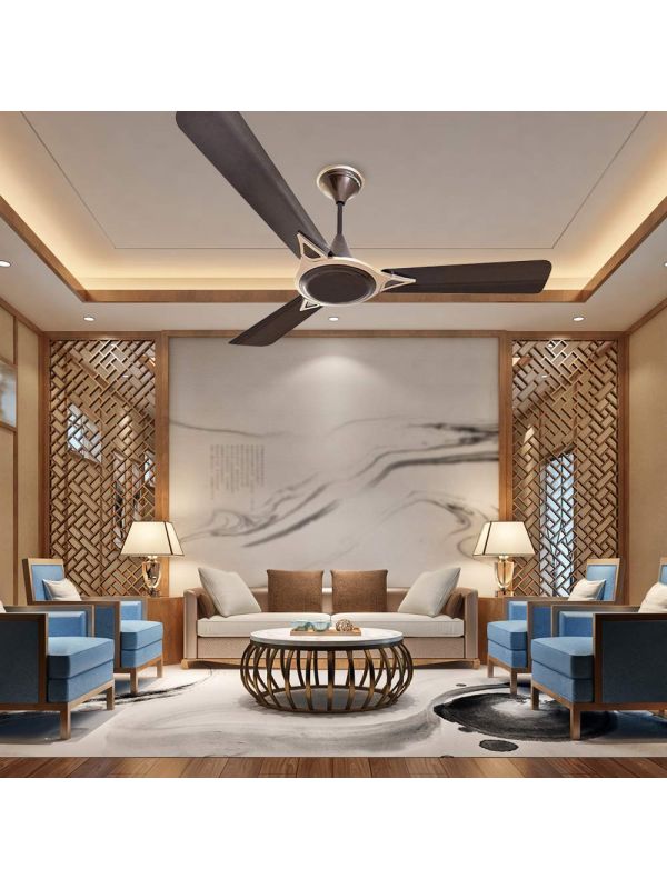 A tint of Metallic shine fuse with a contemporary design at the center lends the fan a unique focal point that enhance the ambience of your designer space, thereby creating a unique style statement.