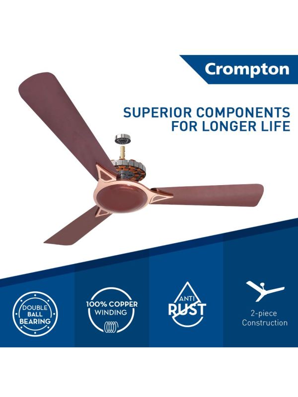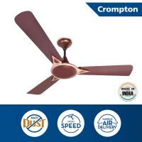 Brand: Crompton Greaves. Series: Avancer Prime. Product Name: Antidust Ceiling Fan. Model Code: AVR-PR-CFBRW-9. Warranty: Standard Warranty Applicable Provided By Crompton In India. Size (mm): 900mm. Size (Inch): 36Inch. Sweep: 900mm. Power: 56W. Speed: 420rpm. No. Of Blade: 3. Air Delivery: 155 CMM. Country Of Origin: India. Color: Coffee Brown. India 1st Anti-Dust fan.