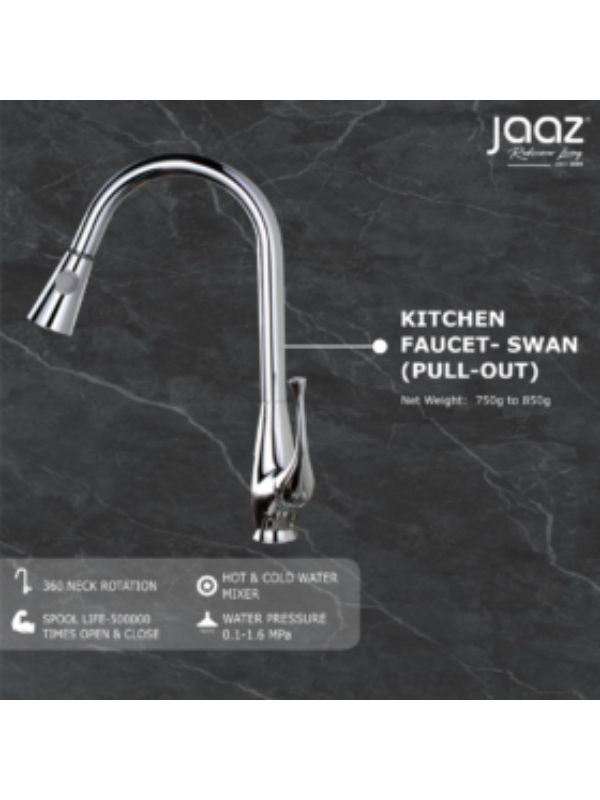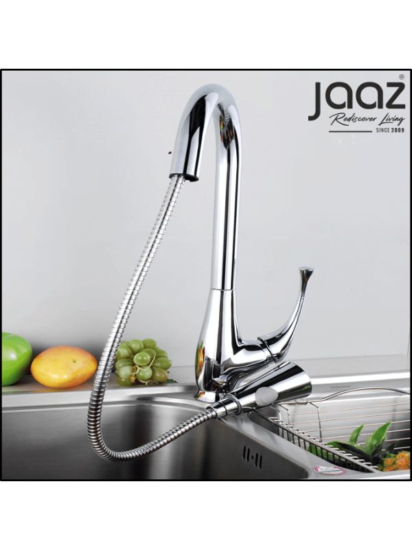 Jaaz Swan Chrome Finish Hot and Cold Pull Out Water Mixer Kitchen Faucet SWAN-KF