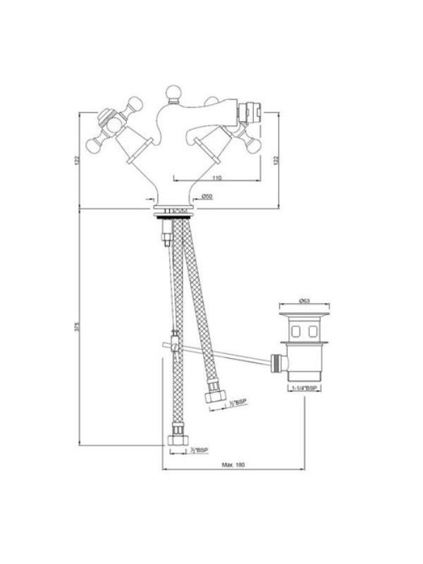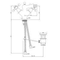 1 - Hole Bidet Mixer with Popup Waste System with 300mm Long Braided Hoses