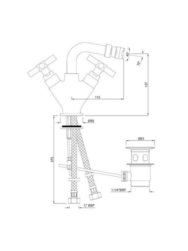 1-Hole Bidet Mixer with Popup Waste System with 300mm Long Braided Hoses