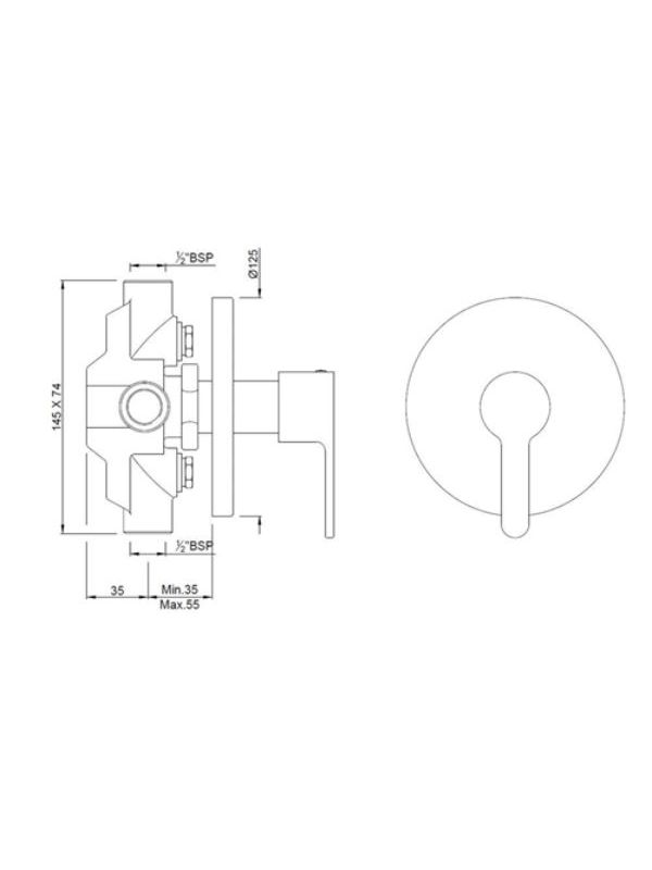 4-Way Diverter for Concealed Fitting with Built-in Non-Return Valves with Diverter Handle