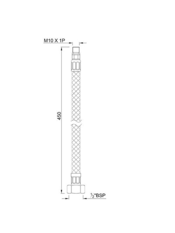 450mm Long Braided Hose with M10X1 Nipple, 15mm Nut, O-Ring & Rubber Washer (Suitable for Basin Mixers)