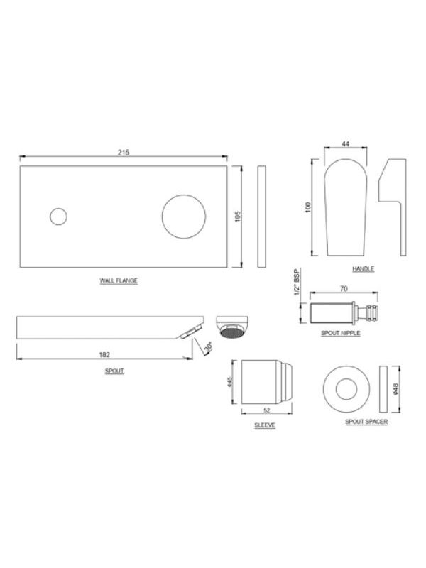 Exposed Part Kit of Single Lever Basin Mixer Wall Mounted Consisting of Operating Lever, Cartridge Sleeve, Wall Flange, Nipple & Spout (Compatible with ALD-233N & ALD-235N)