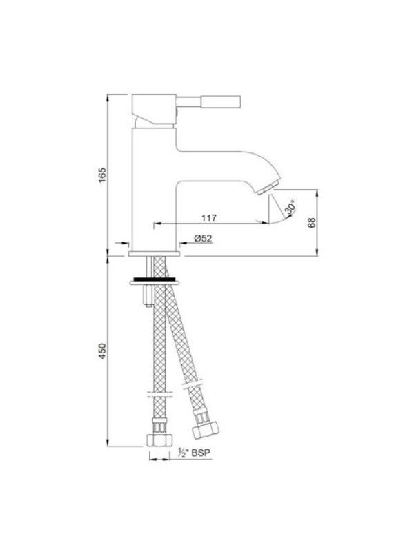 Single Lever Basin Mixer without Popup Waste System with 450mm Long Braided Hoses