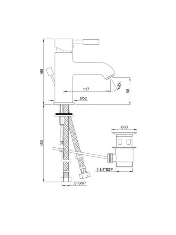 Single Lever Basin Mixer with 450mm Long Braided Hoses with Popup Waste System