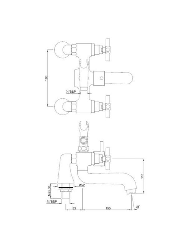 Bath Tub Mixer (Exposed Adjustable Legs) with Telephone Shower Arrangement & Crutch