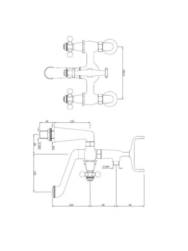 Bath Tub Mixer (Exposed Straight Legs) with Telephone Shower Arrangement & Crutch