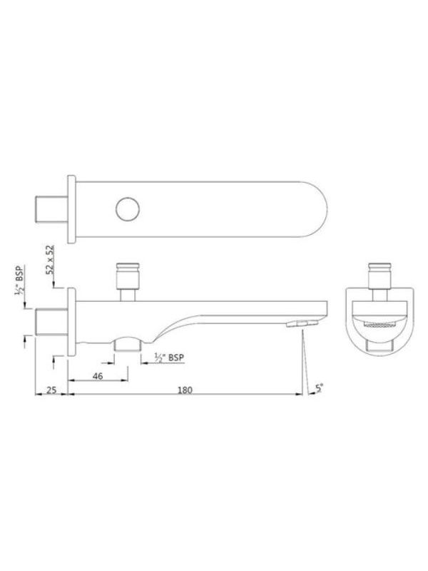 Ornamix Prime Bath Tub Spout with Button Attachment For Hand Shower with Wall Flange