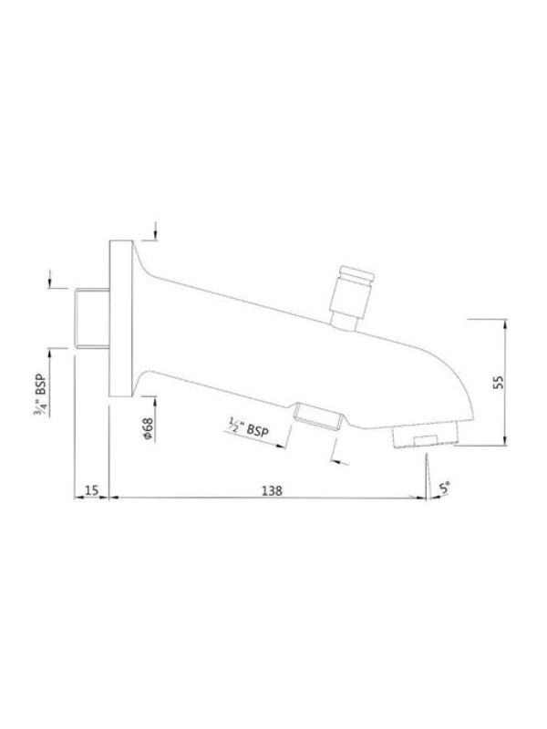 Bath Tub Spout with Button Attachment with Built-in Flange with Inclined Shape