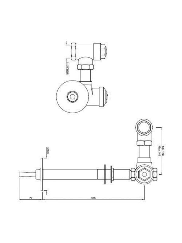Concealed Flush Valve Complete with 32mm Size Control Cock & 300mm Long Operating lever