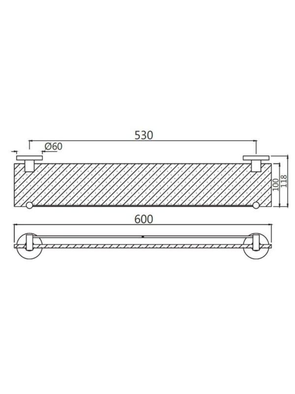 Jaquar Continental Glass Shelf 600mm Long Black Matt Finish - ACN-BLM-1171N