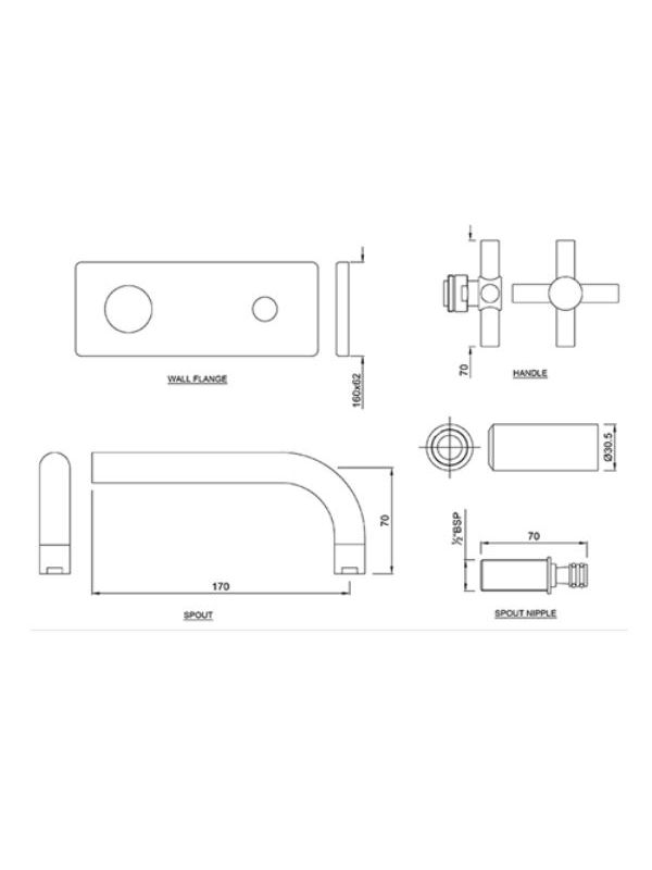 Exposed Part Kit of Single Concealed Stop Cock Consisting of Operating Lever, Cartridge Sleeve, Wall Flange (with Seals) & Basin Spout (Compatible with ALD-441)