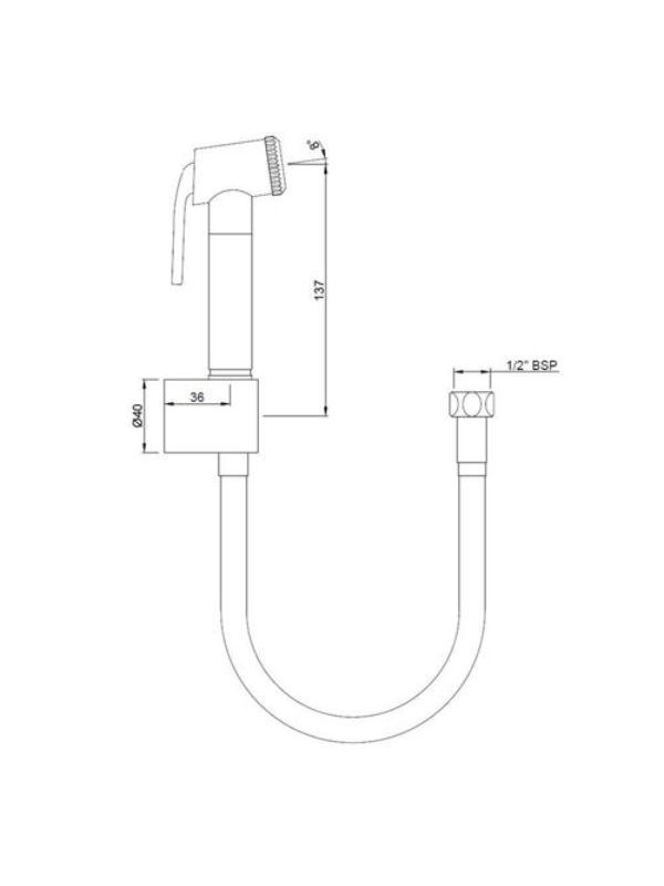Hand Shower (Health Faucet) with 1.2 Meter Long PVC Tube & Wall Hook