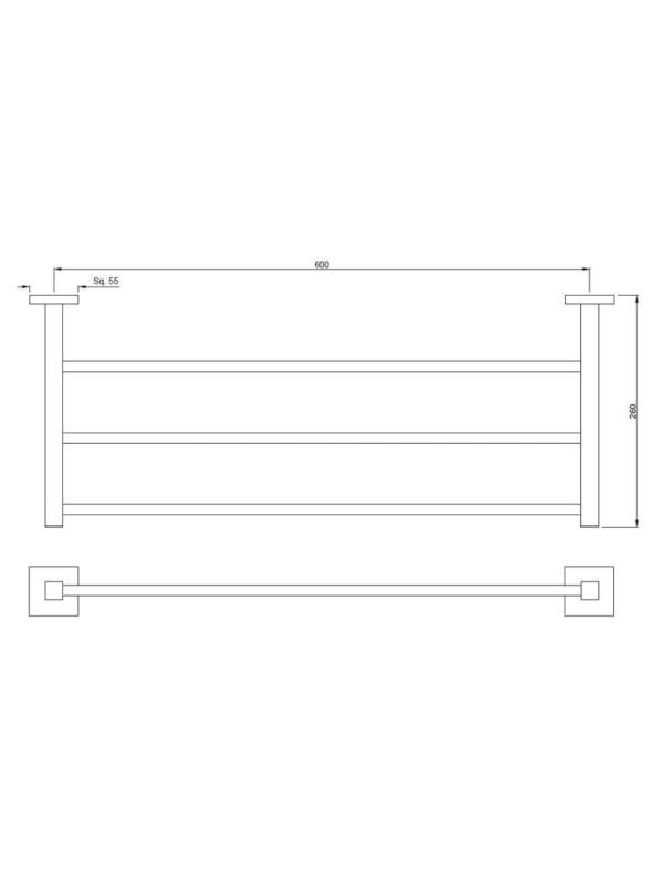 Towel Rack 600mm long without Lower hangers, Stainless Steel.