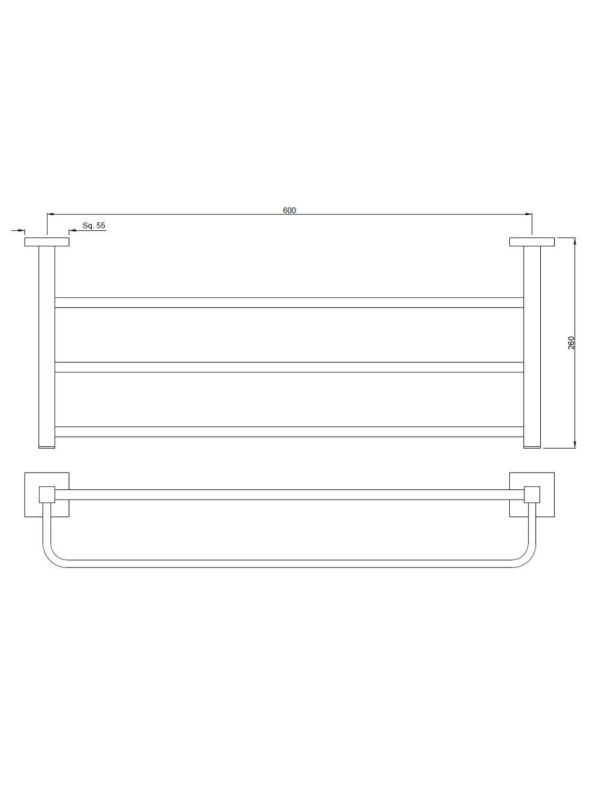 Towel Rack 600mm long with Lower Hangers, Stainless Steel.