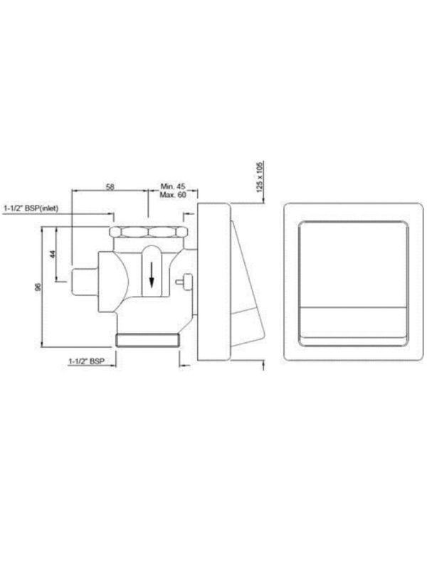 Metropole Flush Valve Dual Flow 40mm Size (Concealed Body) with Concealed Shut Off Provision & Rectangular Dual Flush Plate (ABS Chrome Plated)