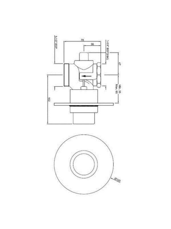 Metropole Flush Valve Regular 32mm Size (Concealed Body) with Exposed Shut Off Provision (Fixed Discharge of 4.0 Lts. Per Flushing)
