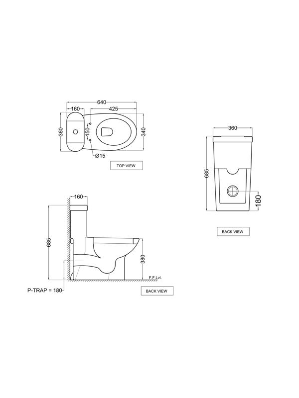 Product SKU : SLS-WHT-6851P180PPSingle Piece-WC with PP soft close seat cover, Hinges, Fixing Accessories, Accessories Set and Cistern fittings,Size:360x640x685 mm,P Trap-180 mm