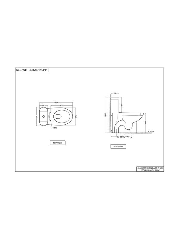 Product SKU : SLS-WHT-6851S110PPSingle Piece-WC with PP soft close seat cover, Hinges, Fixing Accessories, Accessories Set and Cistern fittings,Size:360x640x685 mm,S Trap-110 mm