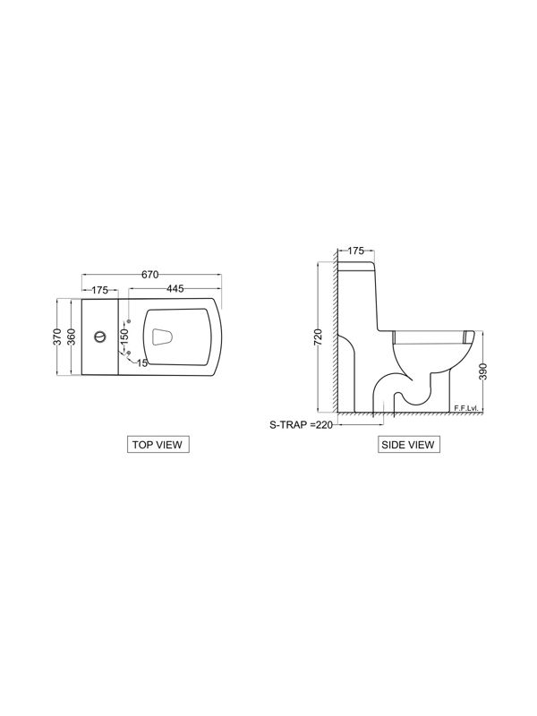 Single Piece WC with UF Soft Close Slim Seat Cover, Fixing Accessories, Accessories set and Cistern Fittings