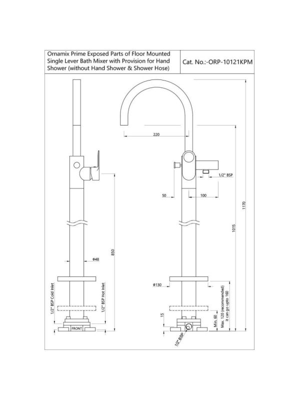 Brand: Jaquar Product Code: ORP-BLM-10121KPM Product Name: Exposed Parts of Floor Mounted Single Lever Bath Mixer Series: Ornamix Prime Finish: Black Matt Exposed Parts of Floor Mounted Single Lever Bath Mixer with Provision for Hand Shower, without Hand Shower and Shower Hose (Compatible with ALD-121).