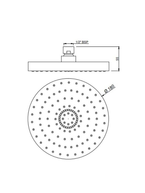 Overhead Shower Dia 140mm Round Shape Single Flow with Air Effect (ABS Body & Face Plate Chrome Plated) with Rubit Cleaning System